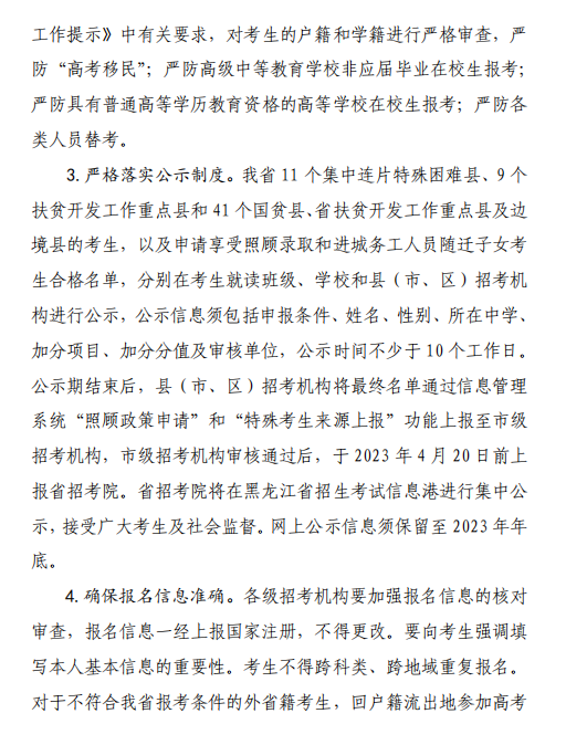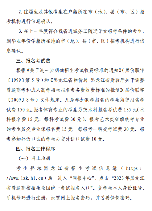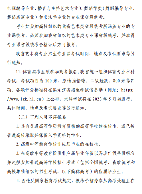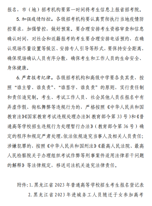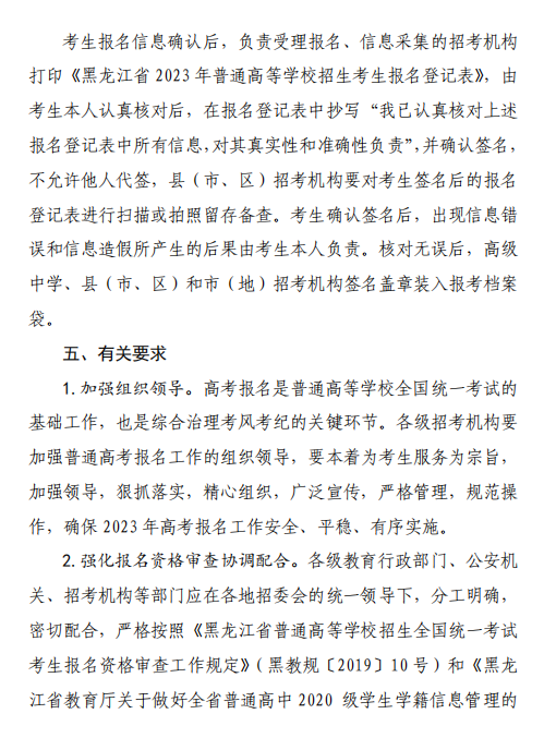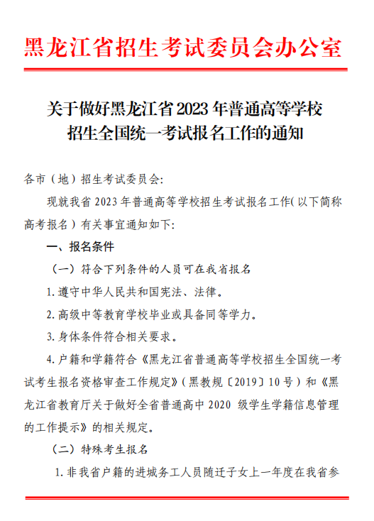 黑龙江省2023年普通高等学校招生全国统一考试报名工作的通知