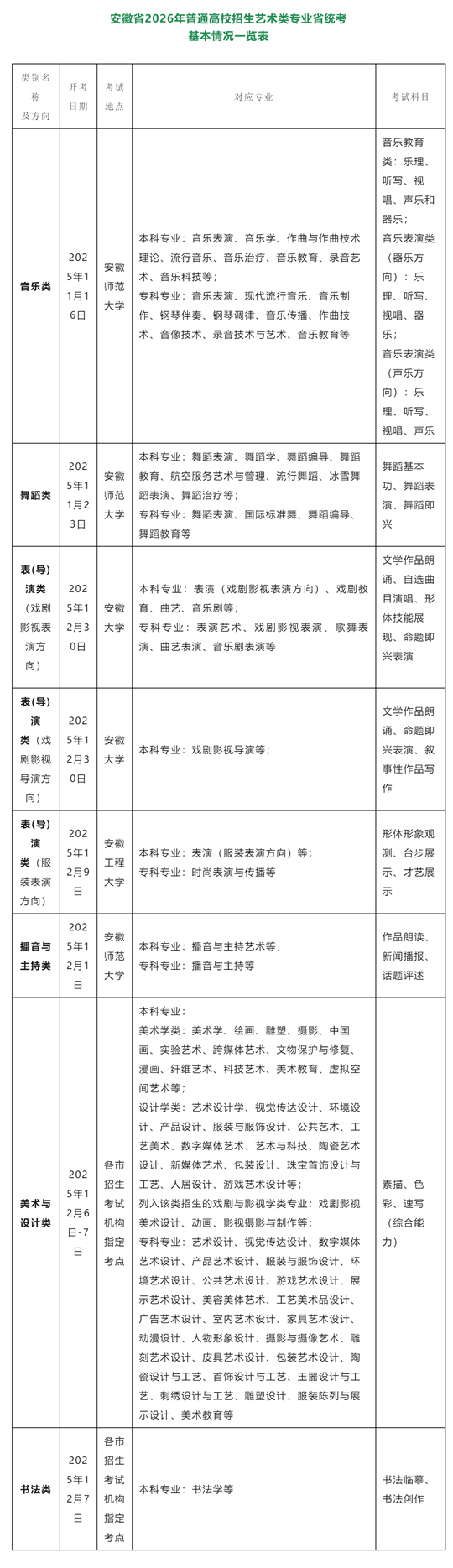 安徽省2026年普通高校招生艺术专业考试简章 |