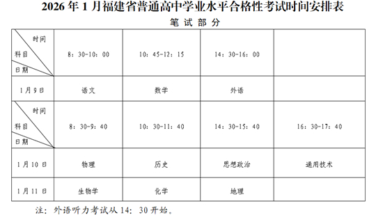 | 福建:关于2026年1月普通高中学业水平合格性考试报名工作的通告 |
