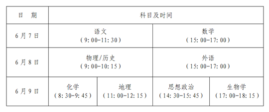 考试时间为6月7日至9日,具体考试时间安排如下: