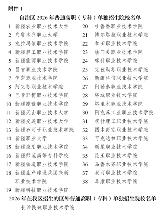 | 新疆:关于做好自治区2026年普通高职(专科)单独招生工作的通知 |