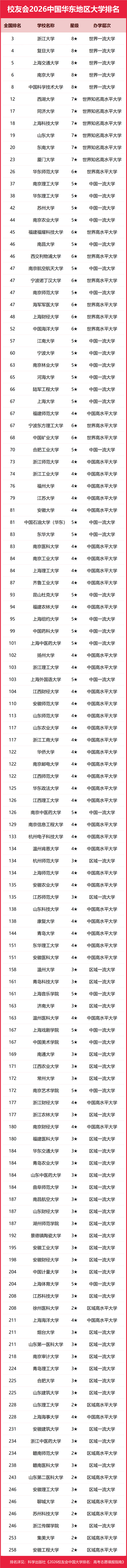 | 校友会2026中国华东地区大学排名,浙江大学、上海建桥学院、齐鲁理工学院、福州外语外贸学院、山东协和学院第一 |