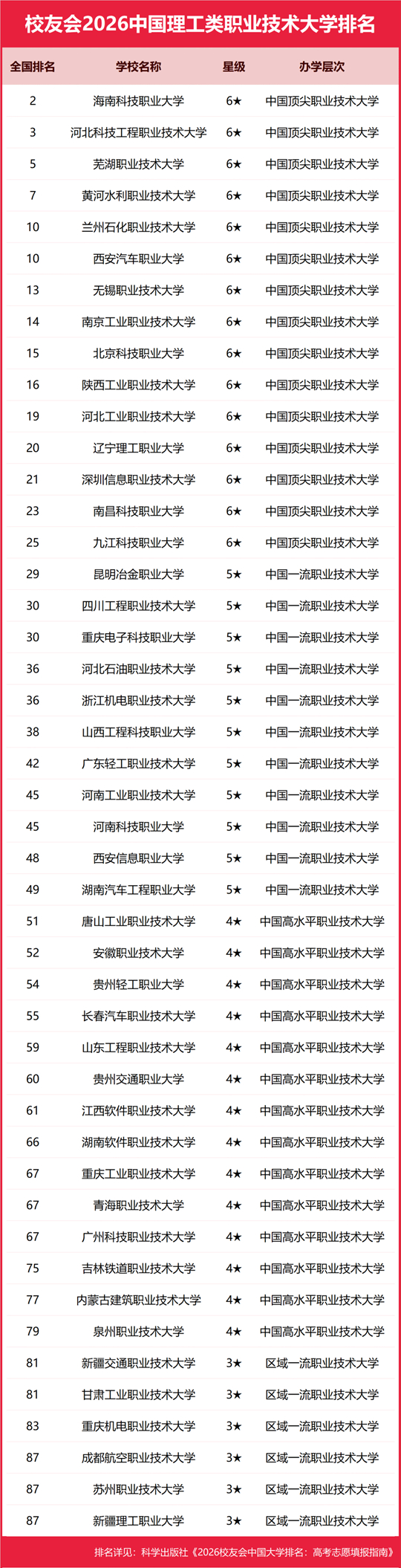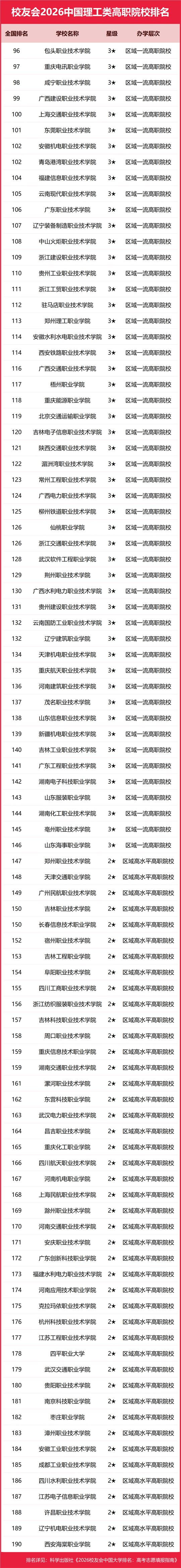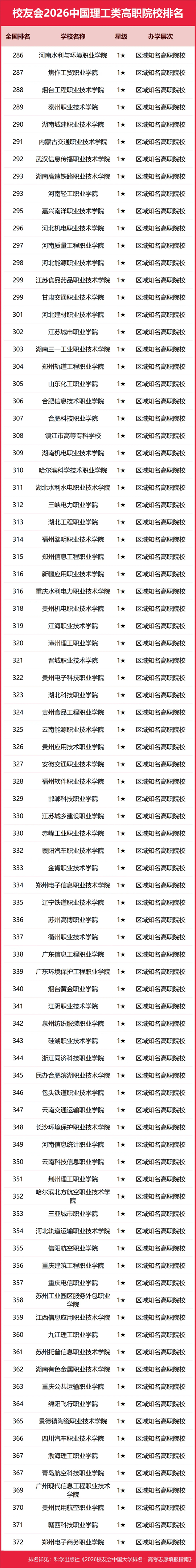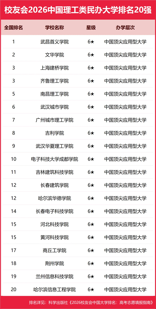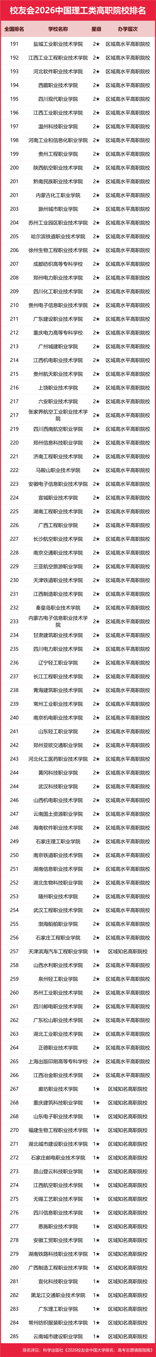 | 校友会2026中国理工类大学排名,中国科学院大学、武昌首义学院、海南科技职业大学、江西应用技术职业学院第一 |