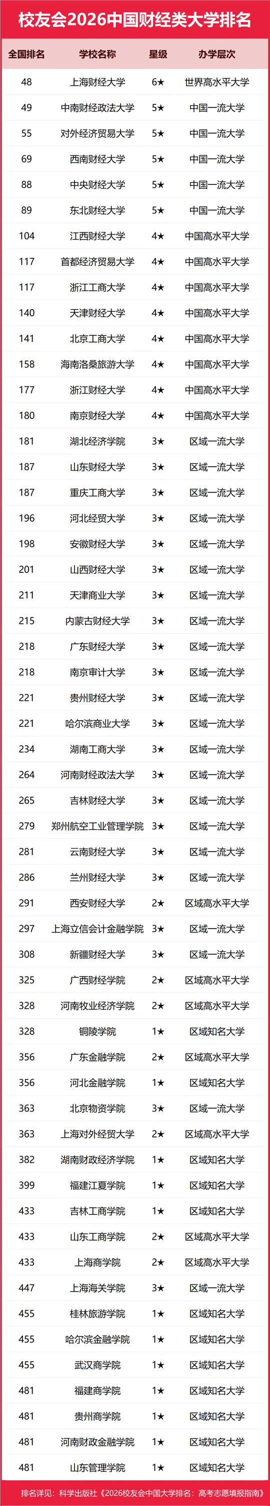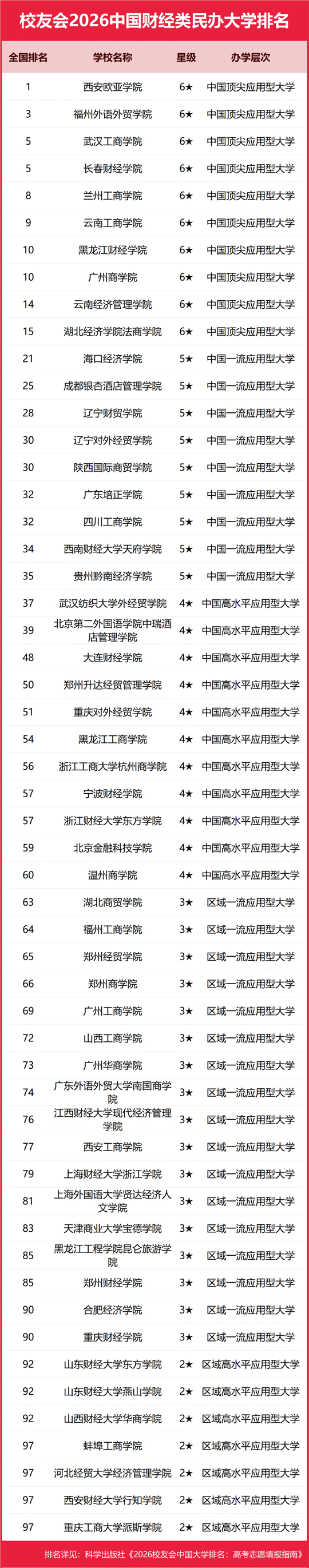 | 校友会2026中国财经类大学排名,上海财经大学、西安欧亚学院、广东工商职业技术大学、浙江金融职业学院第一 |
