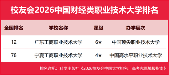 广东工商职业技术大学雄居2026中国财经类职业技术大学排名第一,宁夏工商职业技术大学跻身前3强