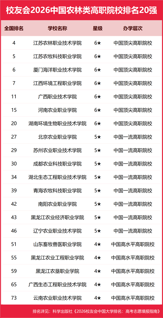 江苏农林职业技术学院雄居2026中国农林类高职院校排名第一,厦门海洋职业技术学院跻身前3强