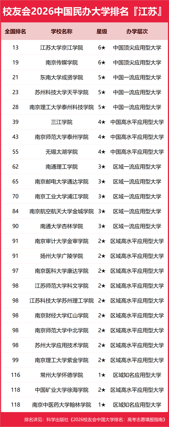 江苏大学京江学院雄居2026江苏省民办大学排名第一,苏州科技大学天平学院跻身前10强