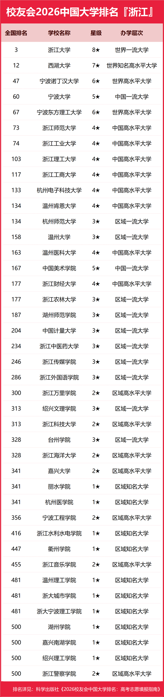 | 校友会2026浙江省大学排名,浙江大学、宁波大学科学技术学院、宁波职业技术大学、浙江金融职业学院第一 |