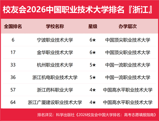 宁波职业技术大学雄居2026浙江省职业技术大学排名第一,金华职业技术大学跻身前3强