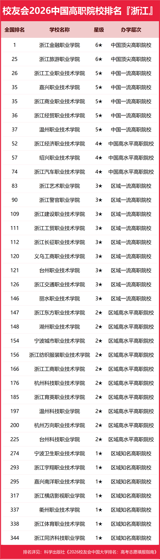 浙江金融职业学院雄居2026浙江省高职院校排名第一,浙江旅游职业学院跻身前3强