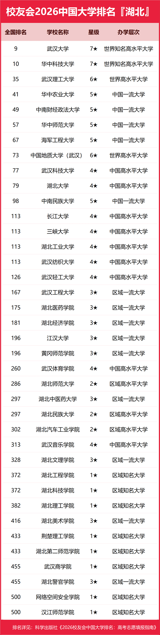 武汉大学雄居2026湖北省大学排名第一,武汉科技大学、湖北大学挺进前10强