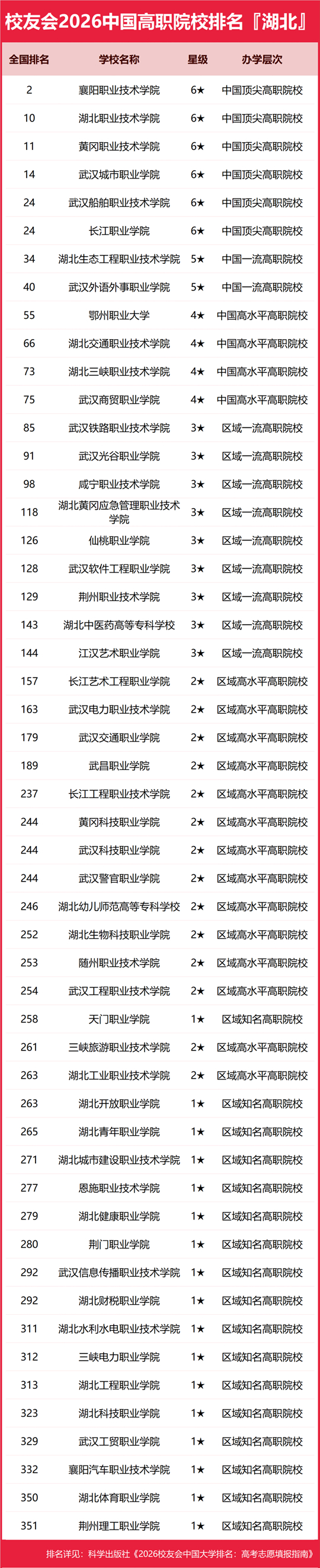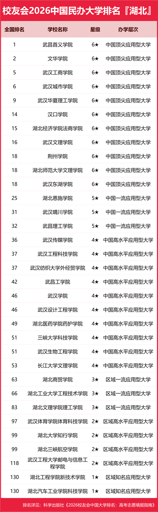 | 校友会2026湖北省大学排名,武汉大学、武昌首义学院、武汉职业技术大学、襄阳职业技术学院第一 |
