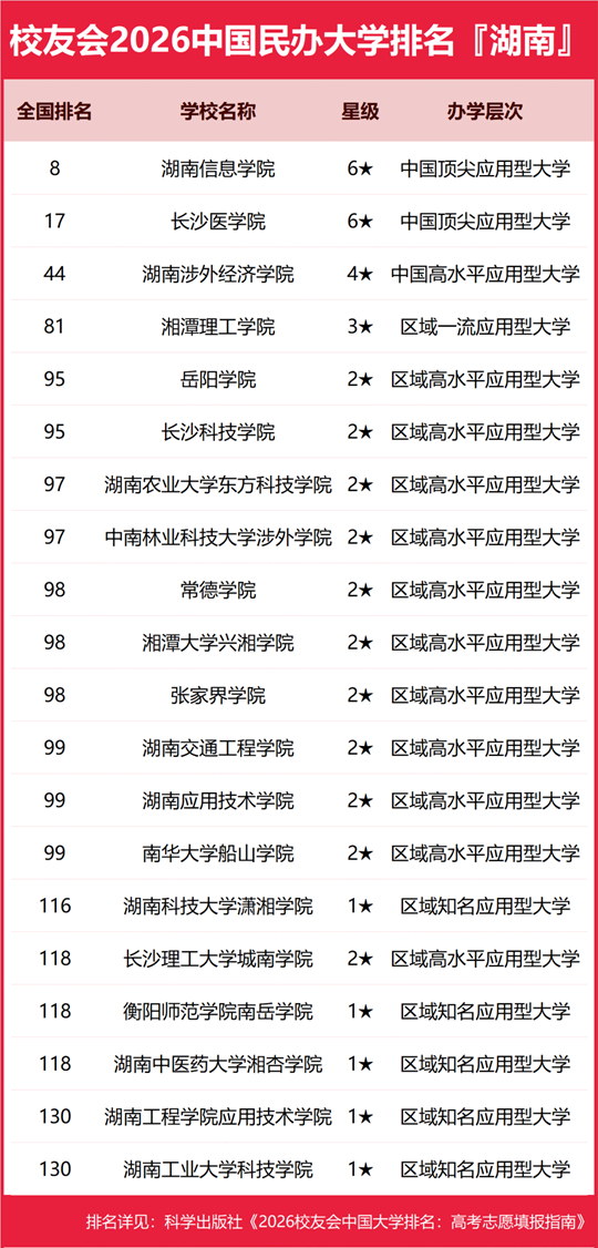 湖南信息学院雄居2026湖南省民办大学排名第一,湘潭理工学院跻身前10强