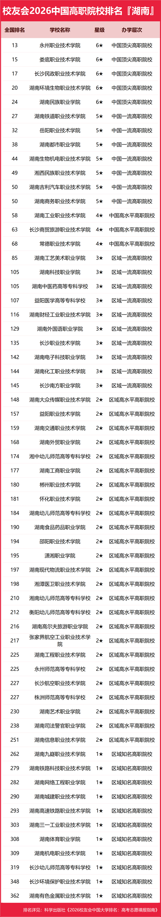永州职业技术学院雄居2026湖南省高职院校排名第一,长沙民政职业技术学院跻身前3强