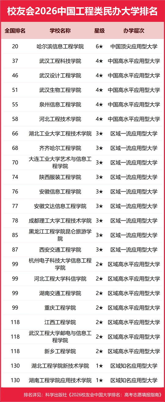 哈尔滨信息工程学院雄居2026中国工程类民办大学排名第一,泉州信息工程学院跻身前10强