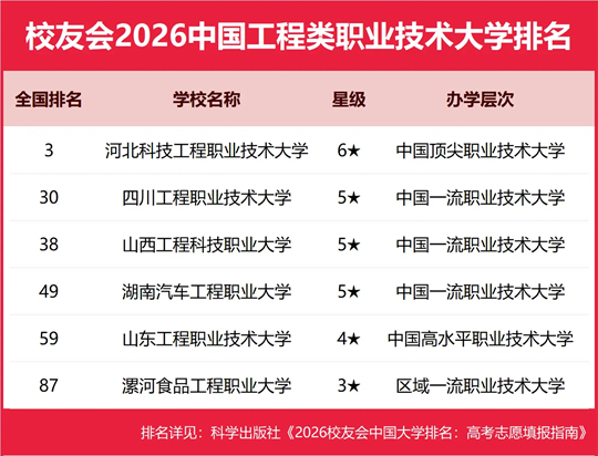 河北科技工程职业技术大学雄居2026中国工程类职业技术大学排名第一,山西工程科技职业大学跻身前3强