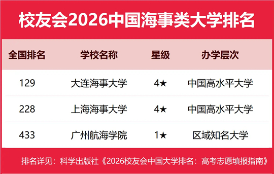| 校友会2026中国海事类大学排名,大连海事大学、泉州海洋职业学院第一 |