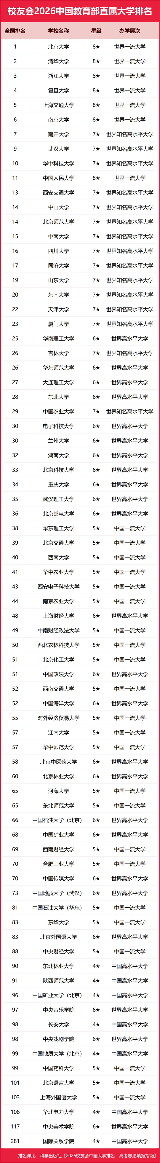 | 校友会2026中国教育部直属大学排名,北京大学夺魁 |