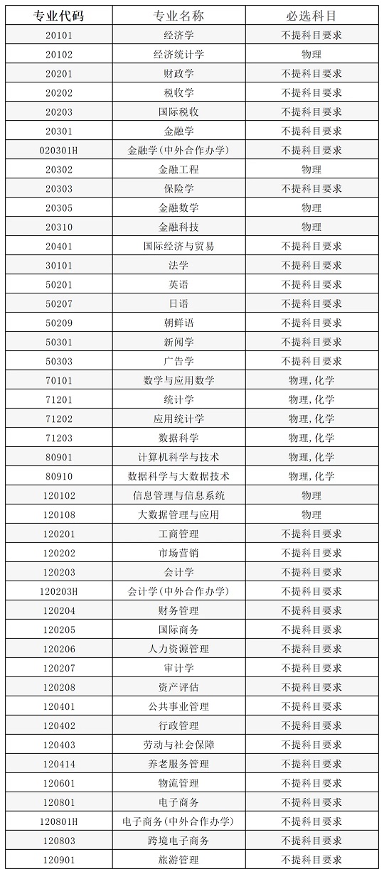 吉林财经大学2024年本科专业及选考科目要求