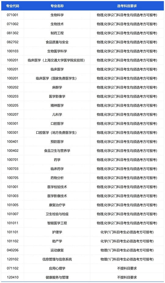 蚌埠医科大学2024年普通本科各专业选考科目要求