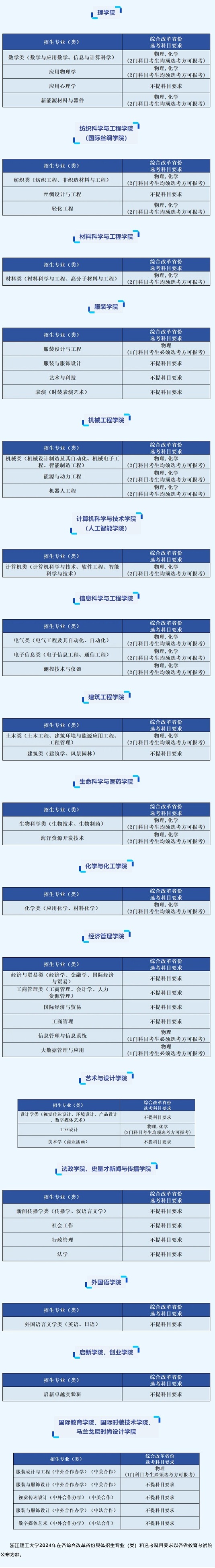 | 浙江理工大学2024年本科招生专业(类)及选考科目要求 |