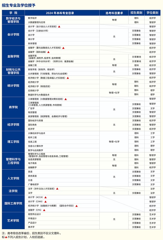 天津财经大学2024年本科专业目录(选考科目要求)