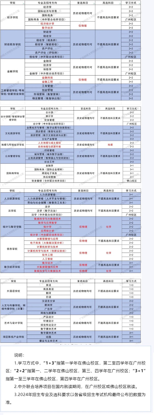 广东财经大学2024普教本科招生专业、选考科目及学习方式