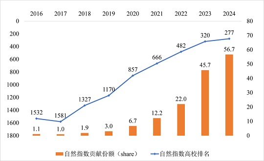 | 1532→277︱2016—2024广西大学自然指数排名快速提升 |