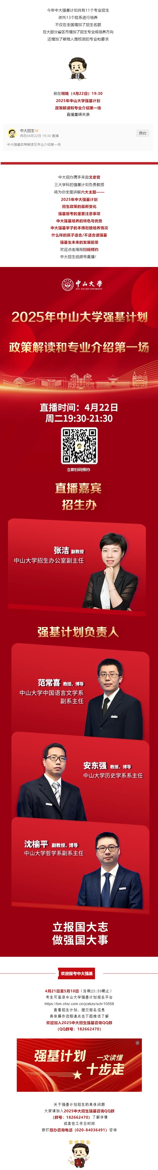 直播预告丨2025中山大学强基计划政策解读和专业介绍第一场(4月22)