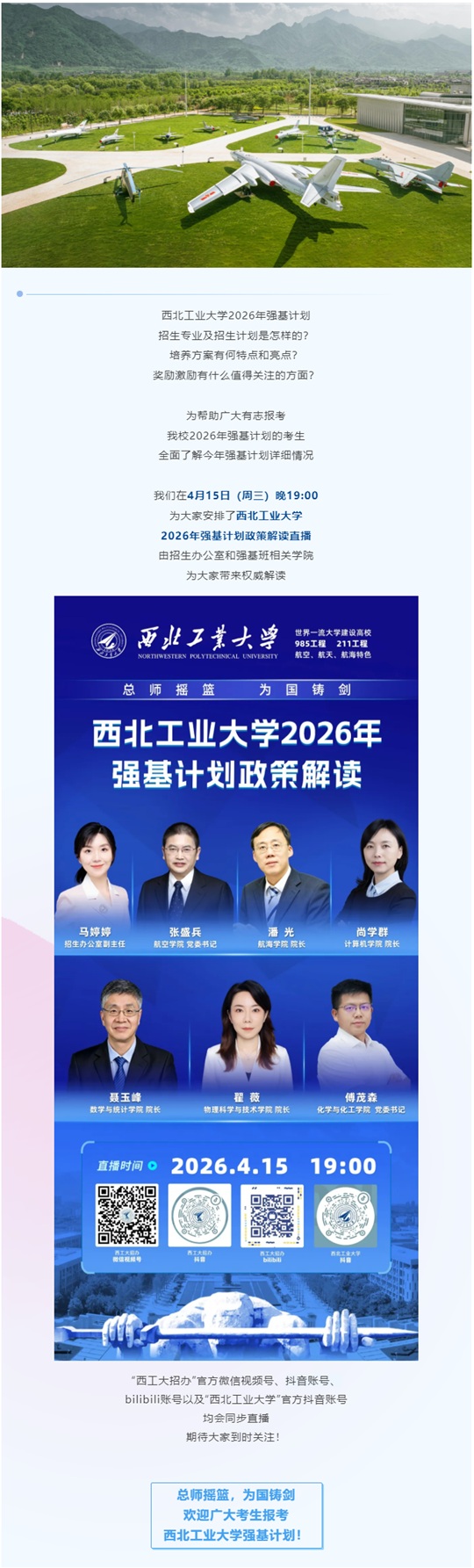 直播预告 | 4月15日西北工业大学2026年强基计划权威解读