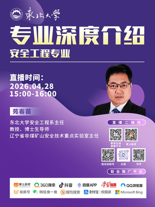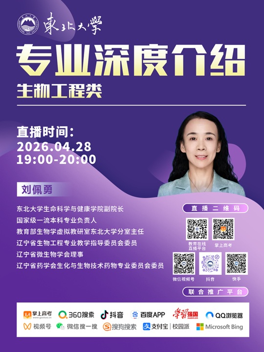 | 直播预告 | 4月28东北大学专业深度介绍-安全工程、生物工程类 |