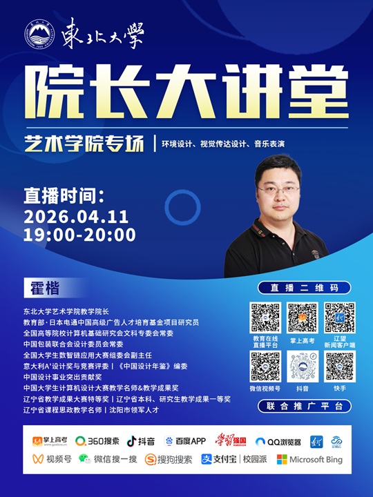 | 直播预告 | 东北大学“院长大讲堂”艺术学院专场(4月11日) |