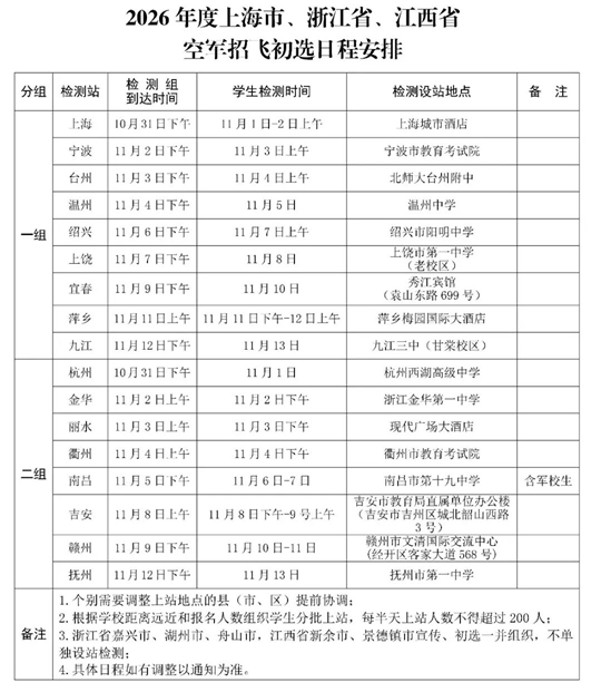 2026年度上海市、浙江省、江西省空军招飞初选日程安排 |