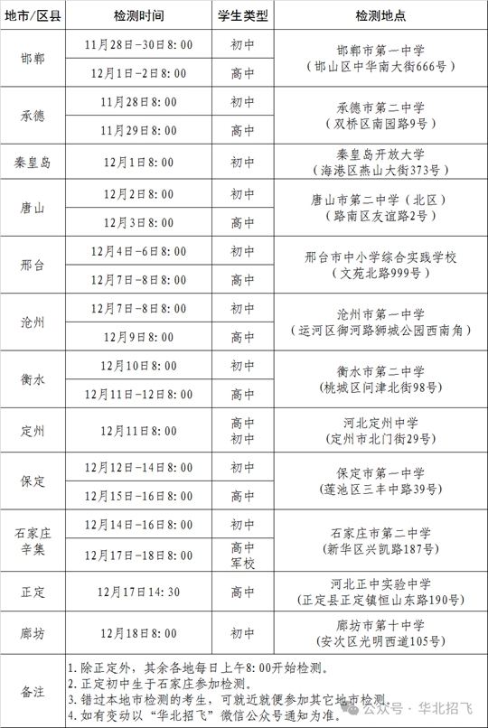 | 2026年度河北省空军招飞、青航校招生初选检测日程安排 |