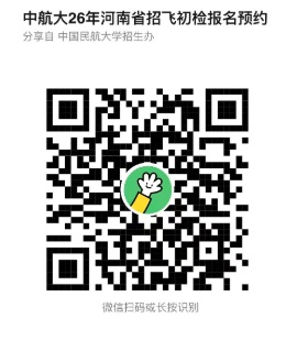 3.考生需扫描下方招飞报名二维码,完成个人信息填写并选择意向预选初检场次,提前完成预约后方能参加我校组织的招飞预选初检。预约名额有限,约满为止,请及时进行预约。