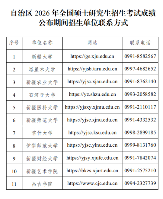 | 新疆:2026年全国硕士研究生招生考试考生初试成绩2月28日10时公布 |