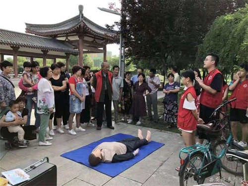 ——西安培华学院红十字会:6月29日,西安培华学院红十字会于赶赴陕西省华阴市开展暑期三下乡活动,志愿者们将以应急救护为主线,以防震减灾,儿童五防等为辅线,双线发展。向华阴市人民传播急救知识,发扬红十字精神,树立培华人风采。本次暑期三下乡,西安培华学院红会志愿者们分别在华山北广场,市政府广场,生态公园,玉泉院等6个广场公园依次进行心肺复苏宣讲。并来到当地两个村子和小学进行走访和知识普及。真正做到将知识和热情带到每家每户,传播红十字会精神。
