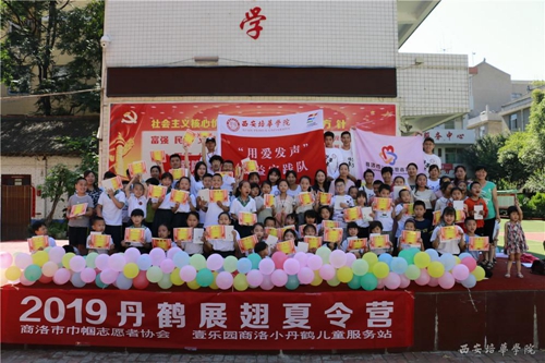 ——“用爱发声”社会实践队:7月1日-7月8日,“用爱发声”社会实践队师生一行12人到达陕西省商洛市巾帼志愿者协会,以小丹鹤儿童服务站为中心,辐射周边社区留守儿童,开展为期8天的暑期三下乡社会实践活动。本次活动,通过与当地留守儿童相处互动的过程中给他们普及播音主持专业的基础知识,给孩子灌输敢于表达敢于发声的意识,提高孩子们对语言的运用能力和对他人语言的理解能力,并且有利于智力因素和非智力因素的全面提升,让孩子勇于表现自己,培养孩子的领导力,有效增强自信心,促进身心全面发展。同时也为当地志愿者服务贡献自己的一份力量。
