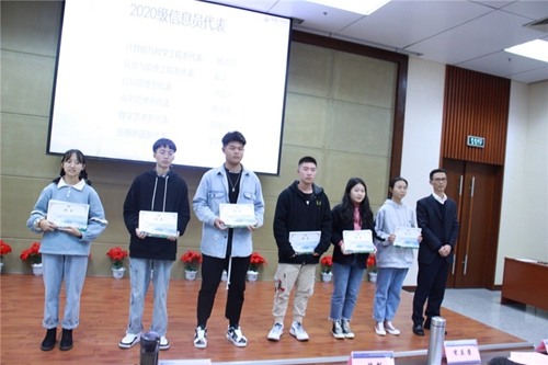 康桂花副校长对2019-2020学年教学质量信息反馈过程中工作表现优异的信息员进行了表彰;程学良部长为2020-2021学年教学信息员颁发聘书。
