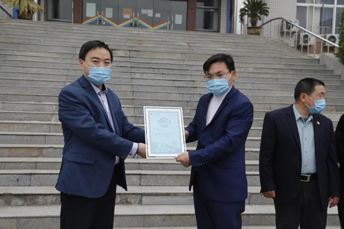 学校副校长李吉友同志向捐赠校友史团国颁发捐赠证书