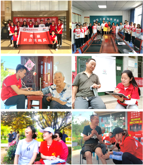 西安培华学院爱康社会实践队成立于2017年4月,由来自医学院护理学专业的10余名同学组成,实践队每月都会走进西安市长安区、雁塔区的社区中进行中医特色送健康服务,至今已历经4年,累计服务达5000余人次。2021年7月12日至27日,在医学院党委书记王平安老师、专业课教师李安琪老师、张少波老师、李萌老师、原玮老师等多名专家和老师指导和参与下,实践队员赶赴陕西省宝鸡市岐山县凤鸣镇北郭乡开展为期15天的“永远跟党走,医疗筑新村”暑期三下乡社会实践活动。主要围绕北郭乡卫生院、凤鸣区域敬老院、周原广场及附近村庄开展活动。主要社会实践服务项目涉及6个方面:血压测量、中医特色健康服务、常见疾病与多发病预防知识宣讲、进行中老年人医疗卫生知识普及情况调研、助力新冠疫苗接种保障、教授养生经络拍打操和洗手操,通过调研、走访、数据采集、分析,实践队撰写了《凤鸣镇卫生服务建设及村民中医药健康素养现状的调研报告》,覆盖人数近1000余人。同学们用多元化的实践活动和数据来帮助当地村民深入了解医疗知识,提高健康用药水平,助力乡村振兴计划和健康中国建设。