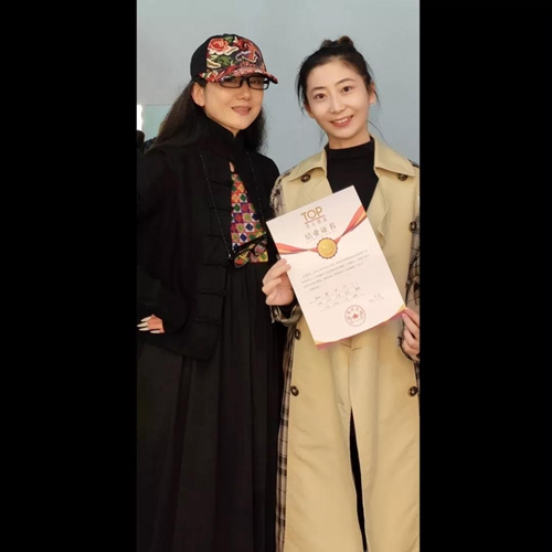 孙婷婷(右)与著名舞蹈艺术家杨丽萍老师合影