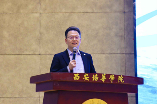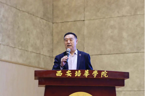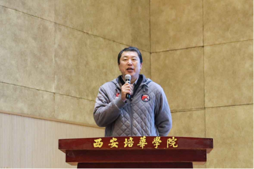 在启动仪式上,西安培华学院姜波理事长致欢迎辞,他表示培华体院学子要不忘初心、牢记培华体育人的使命担当,淡薄名利,继续耕耘、再攀高峰,守护培华人的体育使命和“大健康”责任,为书写陕西青年篮球人更为绚丽的明天而努力奋斗。