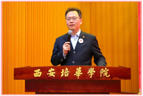西安培华学院理事长、西安培华学院红十字会会长姜波在讲话中,介绍了红十字会精神形成的历史沿革,并谈到在培华创办和发展的进程中,红十字会精神和红会成员对国家发展和社会进步所做出的贡献。与此同时,姜波理事长也对红十字会未来的发展提出了期望并给予勉励,希望我校红十字会和加入红会的同学们,能够更好地明确未来发展规划,更好地服务于社会发展建设,更好地打造红十字品牌,发扬“人道、博爱、奉献”的精神。同时,理事长也鼓励每一位红十字成员积极地参与各项志愿活动,保持初心,共同努力,勇于奉献,把大爱传递给每一个需要帮助的人身边,让培华红十字会的光芒照耀他人,温暖他人,让小爱汇聚成大爱。在新的起点上,为培华红会的茁壮成长,贡献青春力量。