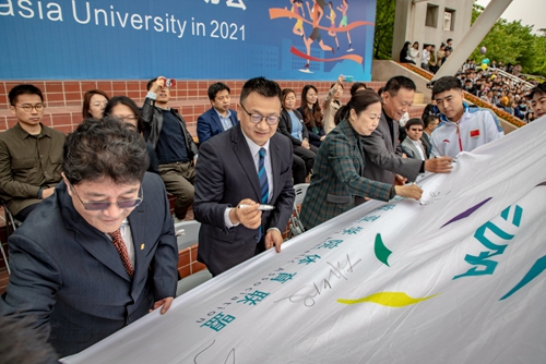 四月春盛樱绽,万物舒展,生命跃动,青春气息随风而至。4月22日,西安欧亚学院第十八届运动会开幕式在学校体育场隆重举行。学校党政领导、各分学院领导、各职能处室领导以及师生代表和运动员代表参加开幕式。开幕式由副校长张军宏主持。