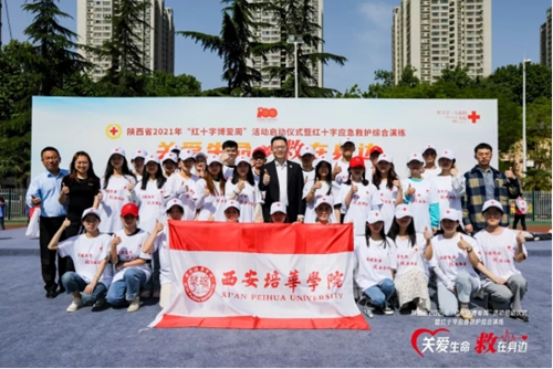 5月6日上午,陕西省红十字会联合省教育厅、西安市红十字会、西安培华学院红十字会等单位在西北政法大学举行陕西省2021年“红十字博爱周”活动启动仪式暨红十字应急救护综合演练,省政府副秘书长张军林出席并宣布 “红十字博爱周”活动正式启动。西安培华学院理事长、校红十字会会长姜波带领培华33名红十字志愿者参加此次仪式及演练活动,并一同参观全国首个红十字文化主题街区,以此庆祝中国共产党建党100周年和纪念第74个“世界红十字与红新月日”。