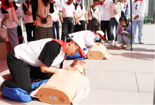 5月8日中午,西安培华学院红十字会在学校综合楼西广场隆重举行西安培华学院红十字会2021年五八博爱周暨“关爱生命、救在身边”应急救护宣传月主题活动。活动中,由红十字会学生分会急救培训部的10名急救志愿者向大家进行心肺复苏实操演练,并积极和现场同学进行应急救护互动宣讲。