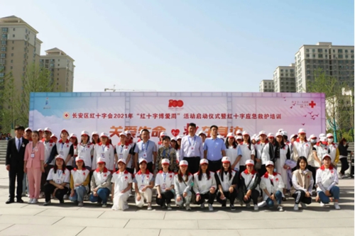 5月8日上午由长安区红十字会主办,西安培华学院、西北政法大学协办的长安区红十字会2021年“红十字博爱周”活动启动仪式在长安中央公园广场举行。西安培华学院学工部部长、校团委书记蔡亮,校团委副书记屈先锋带领39名红十字志愿者参加此次仪式。仪式结束后学校红十字会急救志愿者向现场群众讲授心肺复苏、止血包扎等应急救护技能。