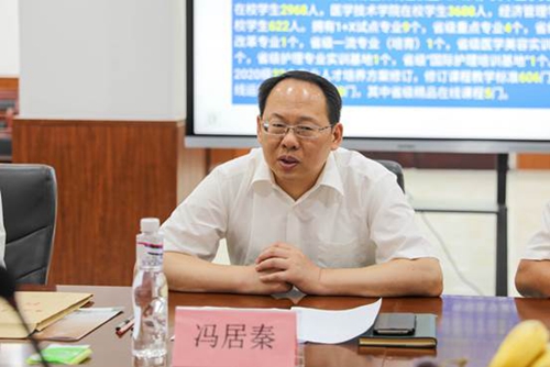 会议伊始,西安海棠职业学院院长冯居秦介绍了学院的基本情况。分别从机构设置、占地面积、校园环境建设、师资队伍组建等方面做了详细介绍。学院通过校企合作的“联培、联训、联考”模式建立了一支校企资源共享的师资队伍,同时引进并聘请了西安交通大学、空军军医大学、陕西中医药大学等院校著名教授作为专业带头人。目前,“双师”素质教师、骨干教师、教学名师、优秀教师比例基本满足教学与科研工作上的需要,形成了一支相对稳定、专兼结合、满足需要的师资队伍。