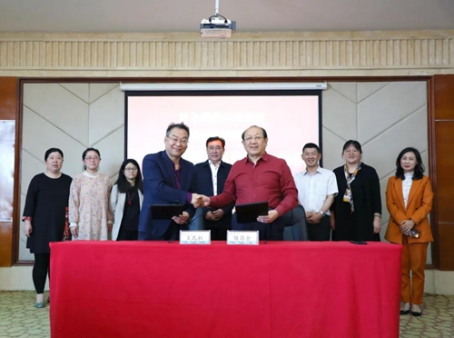 青岛恒星科技学院董事长、校长陈昌金与圆通科技股份有限公司董事长王民权代表双方签署了《共建教育部科学工作能力实训示范基地——合作成立圆通科学工作院合作协议书》。